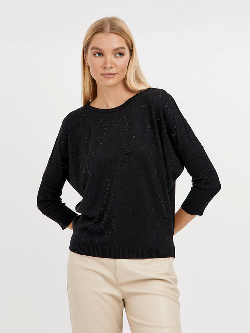 джемпер женский силуэта летучая мышь в черном цвете с ромбами из страз