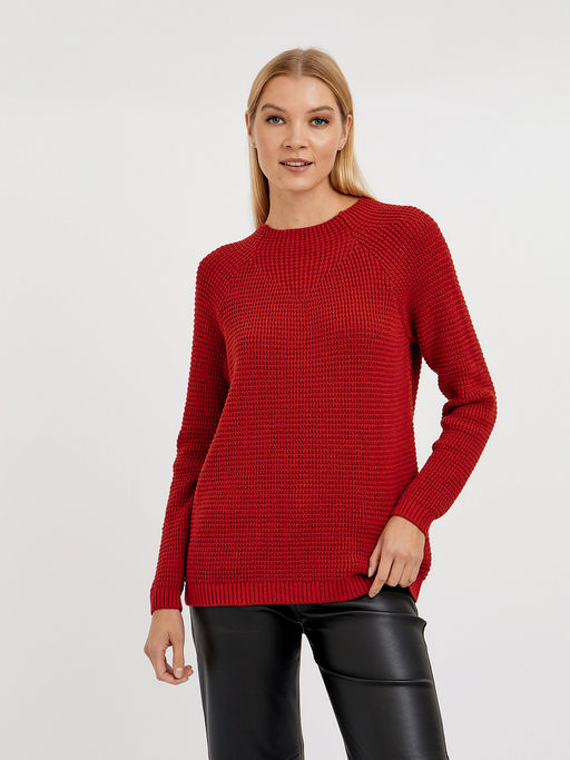 джемпер женский хлопковый в красном цвете с рукавом реглан