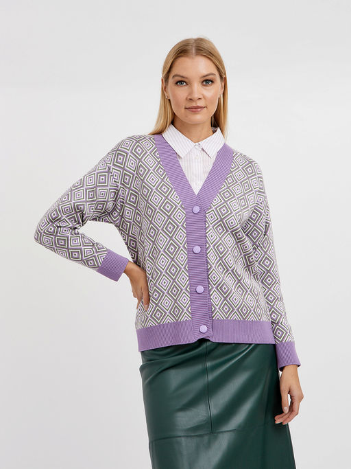 кардиган женский в фиолетовом цвете с геометричным принтом