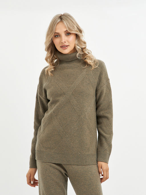 водолазка женская из шерсти с узором ромбы