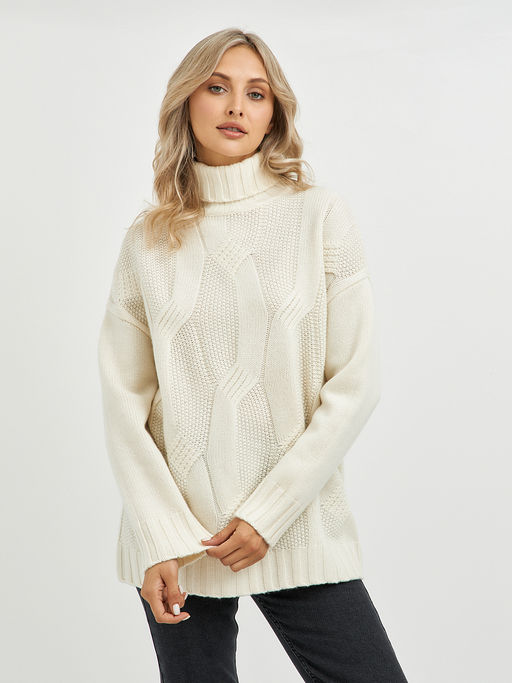 водолазка женская из шерсти в молочном цвете и объемным узором