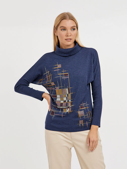 водолазка женская в синем цвете силуэта летучая мышь с добавлением страз
