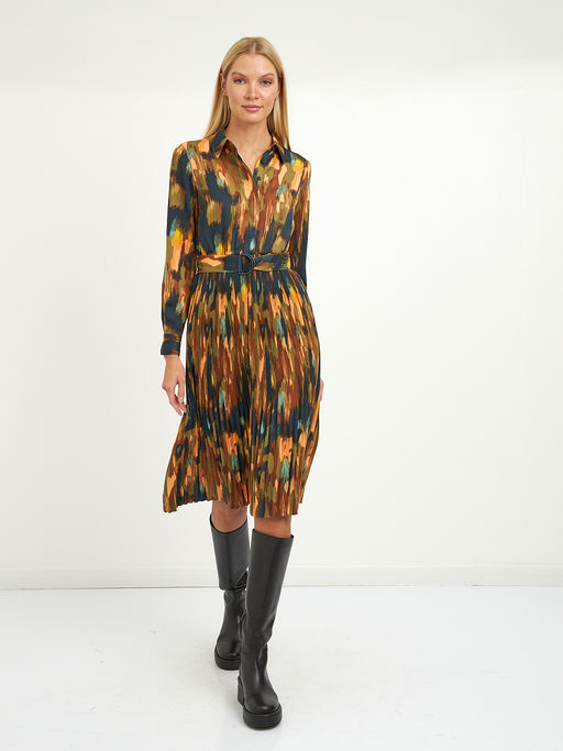 платье на поясе с красочным принтом