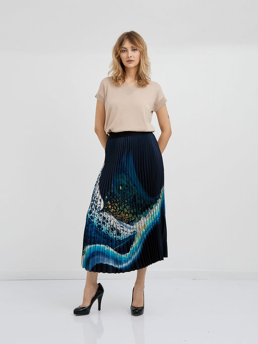 юбка плиссированная в синем цвете с абстрактным принтом