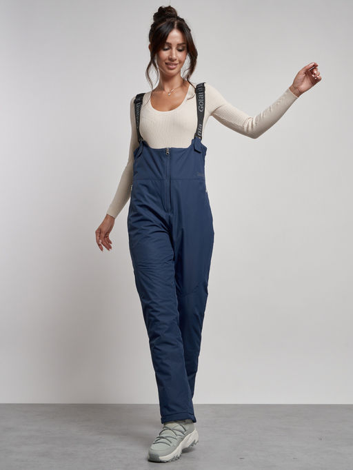 Полукомбинезон с высокой посадкой женский зимний темно-синего цвета 7605TS