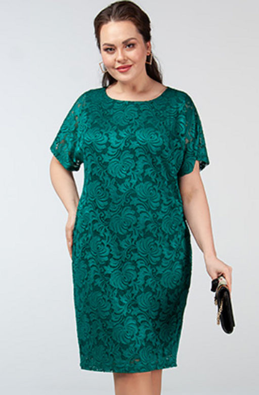 Роскошное женское платье свободного силуэта длины миди из кружевного трикотажа на подкладке