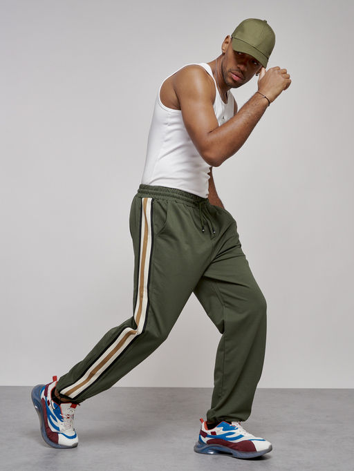 Широкие спортивные штаны трикотажные мужские цвета хаки 12903Kh