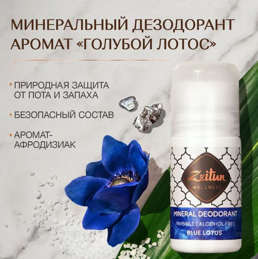 Дезодорант "Голубой лотос". Минеральный, шариковый. С коллоидным серебром, 50мл., шт