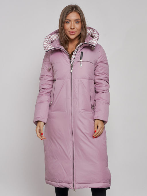 Пальто утепленное молодежное зимнее женское фиолетового цвета 59120F
