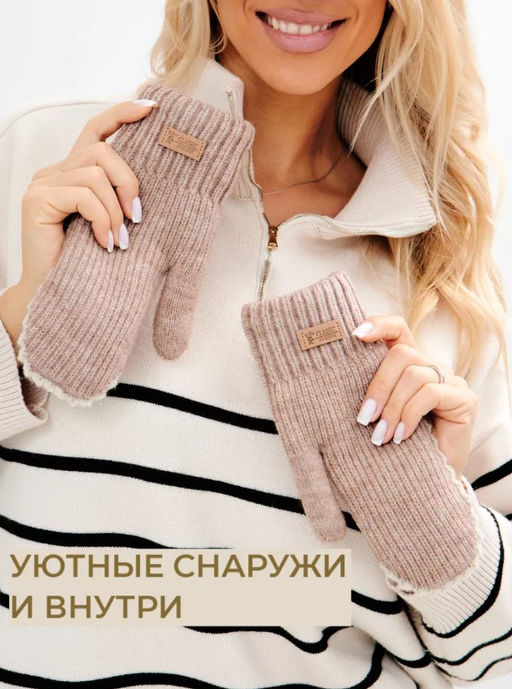 K10950 Варежки (мех внутри) БЕЖЕВЫЙ
