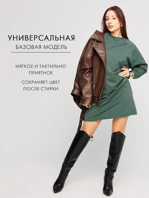 Женское платье с рукавом реглан из футера 2-х нитки Lingeamo хаки ВП-11 (53)