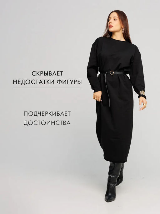 Женское платье макси из футера 2-х нитки Lingeamo черный ВП-10 (35)