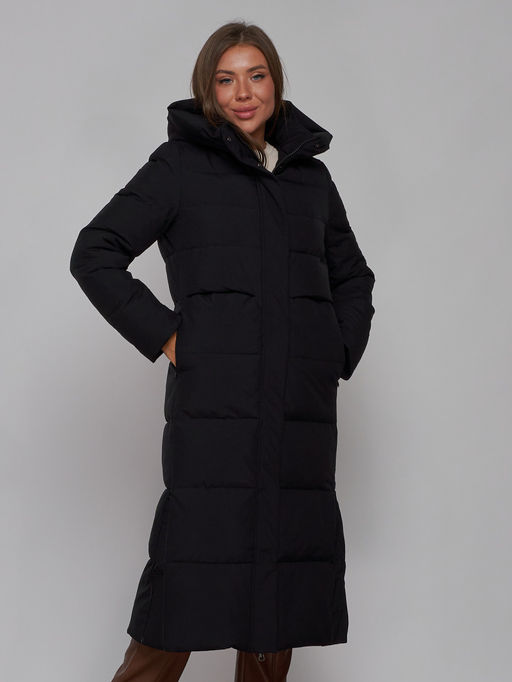 Пальто утепленное молодежное зимнее женское черного цвета 52382Ch