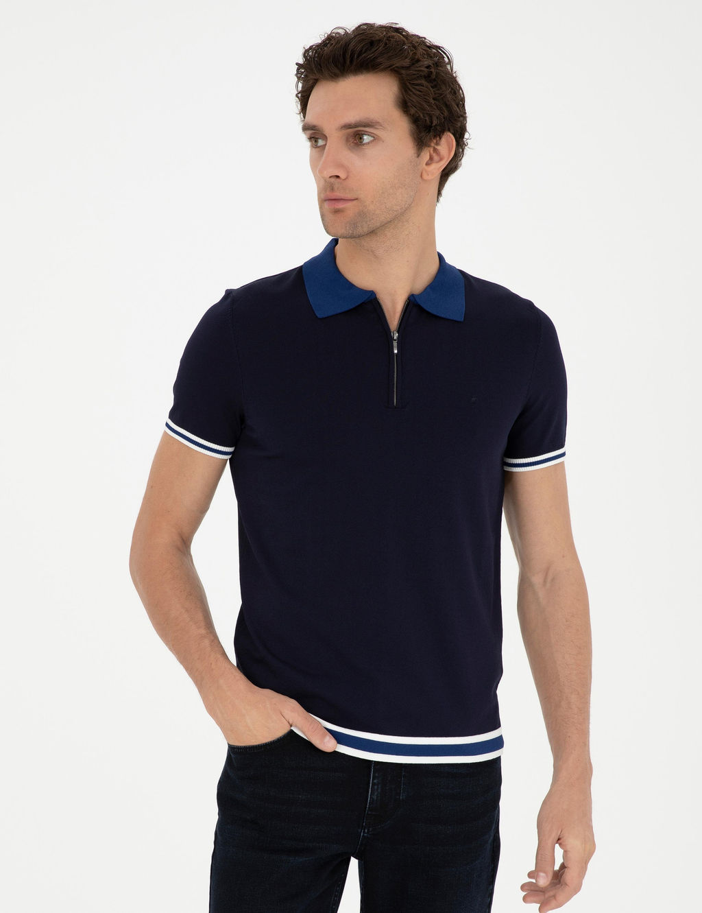 Темно-синяя трикотажная футболка узкого кроя с воротником-поло