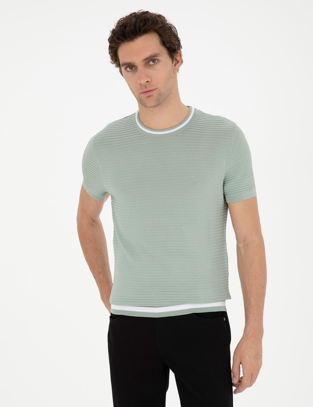 Водно-зеленая приталенная трикотажная футболка с круглым вырезом