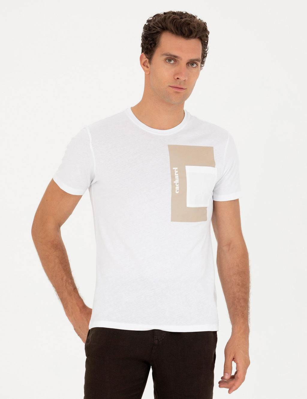 Белая приталенная футболка с круглым вырезом