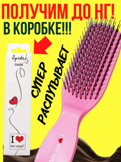 ILMH Spider 1503S Розовая глянцевая Щетка для бережного распутывания волос, 17 см