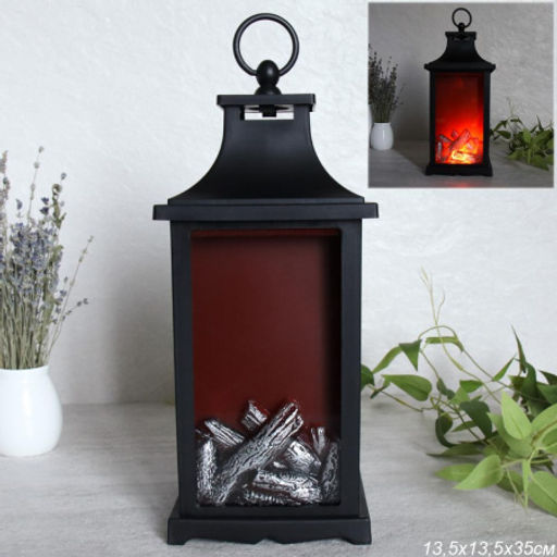 Светильник фонарь настольный Камин 13x13x30 см / YR1168 /уп 24/черный от батареек
