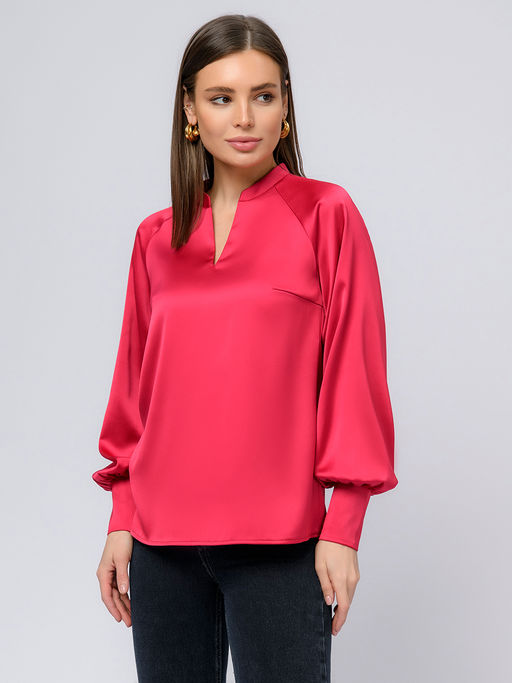 УЦЕНКА. Блуза цвета фуксии с длинными рукавами и V-образным вырезом