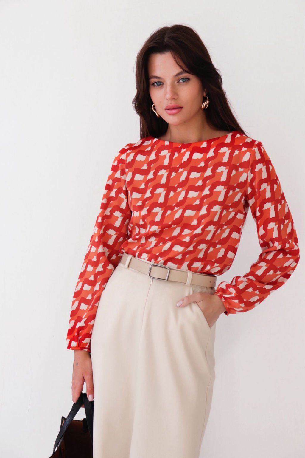 Блуза прямого силуэта с вырезом "лодочка"