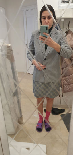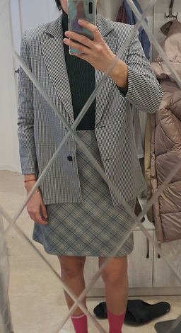 Жакет черный в мелкую клетку удлиненный с отложным воротником