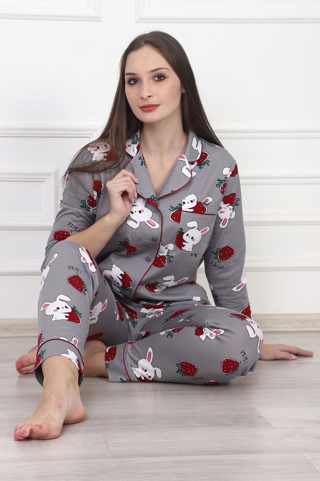 Пижама женская "Клубничный зайка" (классическая)