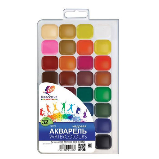 Акварель ЛУЧ КЛАССИКА 32 цвета, пластиковая упаковка, без кисти, европодвес