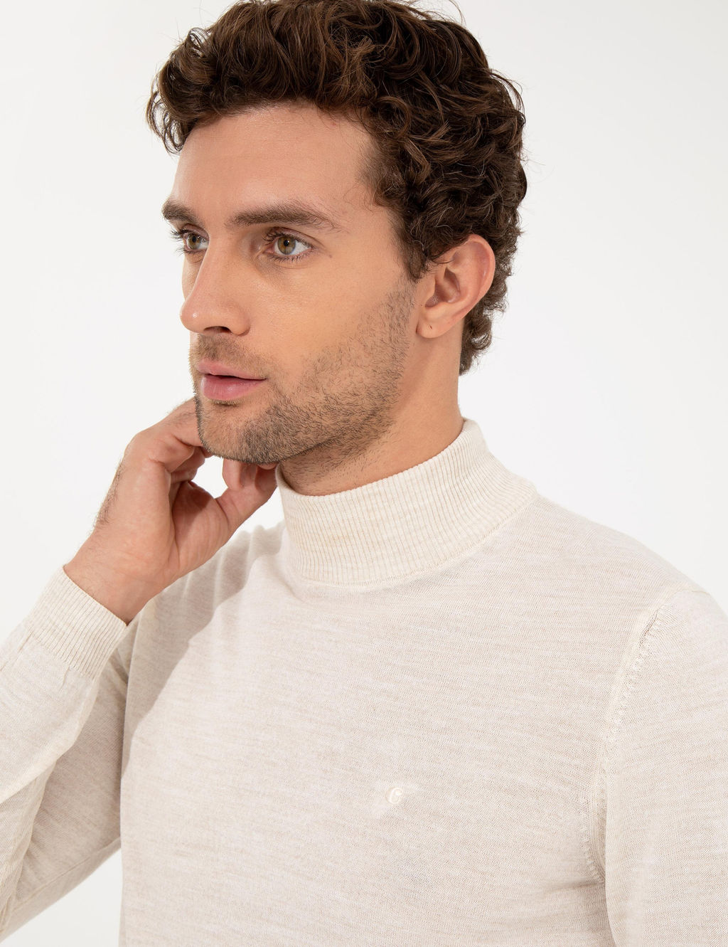 Бежевый базовый трикотажный свитер приталенного кроя в стиле Fisherman