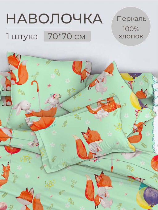 Артикул: Наволочка 70*70 см, перкаль, детская расцветка (Лисята)
