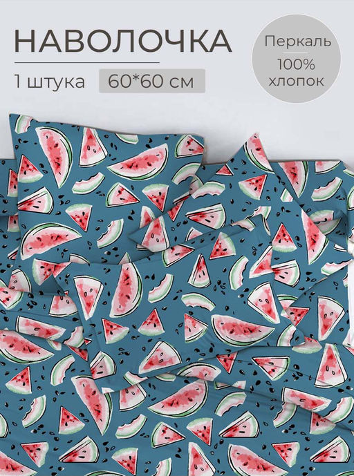 Артикул: Наволочка 60*60 см, перкаль, детская расцветка (Арбузики, бирюзовый)