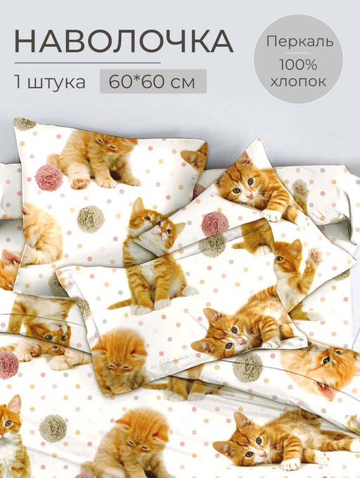Артикул: Наволочка 60*60 см, перкаль, детская расцветка (Рыжие котята)