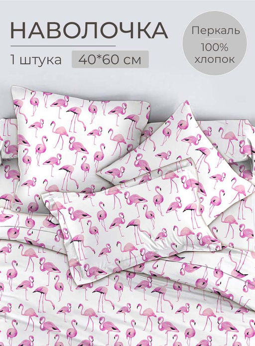 Артикул: Наволочка 40*60 см, перкаль, детская расцветка (Фламинго)