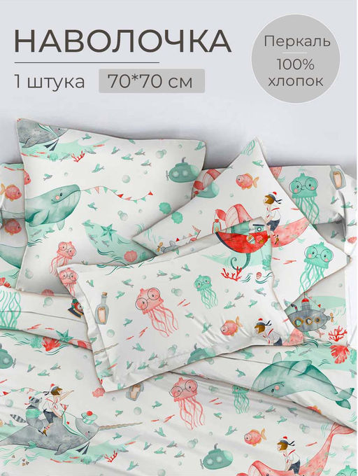 Наволочка 70*70 см, перкаль, детская расцветка (Морячок)