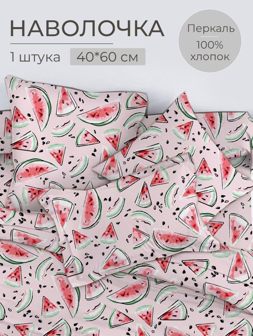 Артикул: Наволочка 40*60 см, перкаль, детская расцветка (Арбузики, розовый)