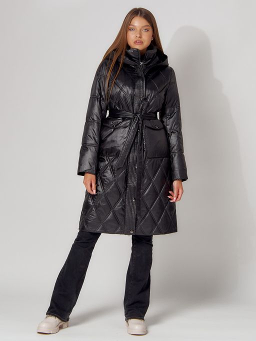Пальто утепленное стеганое зимнее женское черного цвета 448602Ch