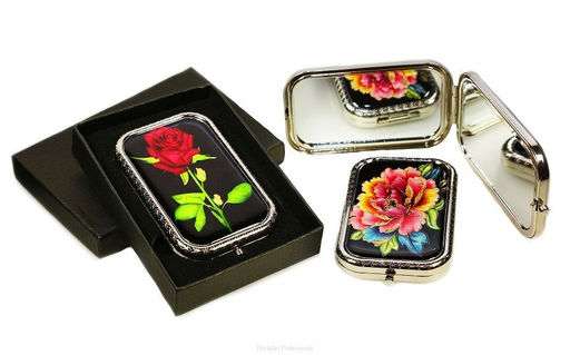 Cindy Косметическое зеркало, квадрат, цветы на черном фоне