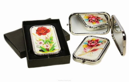 Cindy Косметическое зеркало, квадрат, цветы на белом фоне