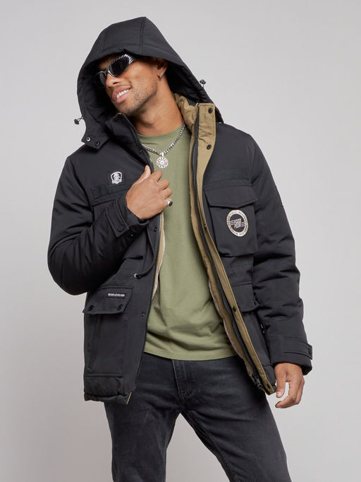 Куртка мужская зимняя с капюшоном молодежная черного цвета 88911Ch