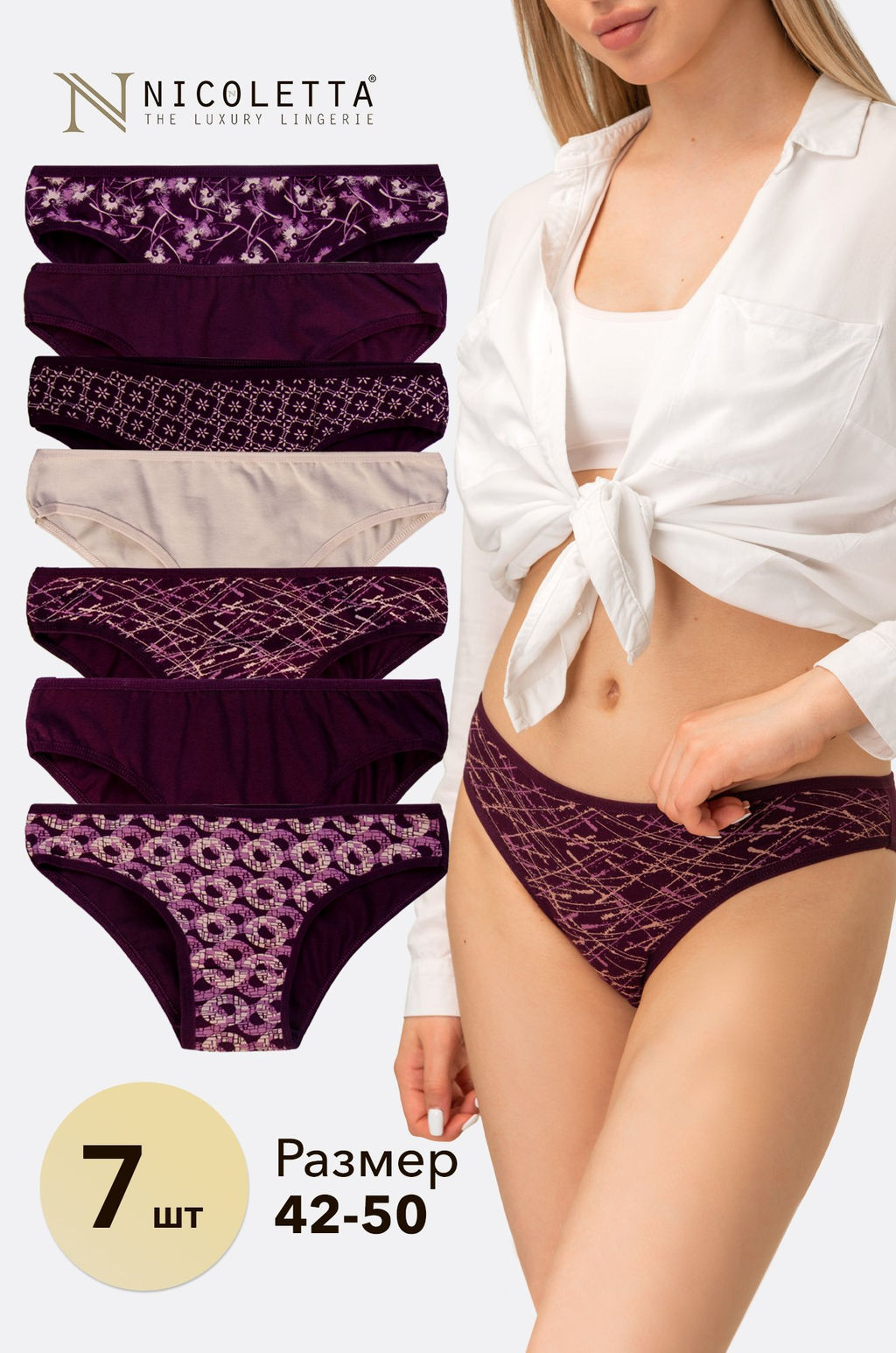 Женские трусы-слипы 7 шт. Nicoletta