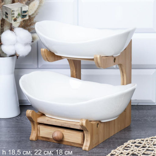 Блюдо 2 штуки на подставке 18/22 см / KT130 /уп 8/ с лотком