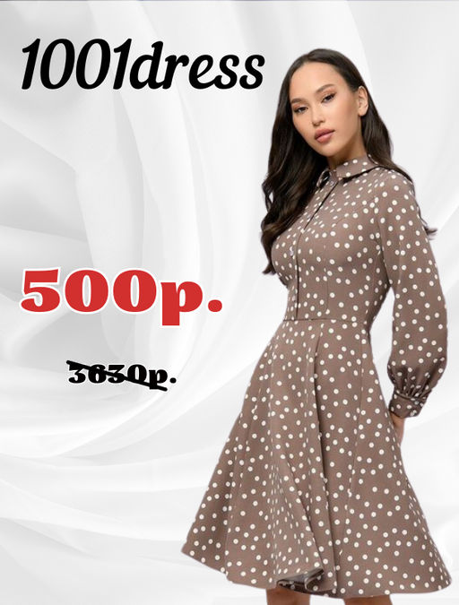 Платье кофейного цвета в горошек длины мини с декоративными пуговицами