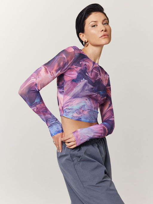 Укороченный принтованный рашгард из эластичной ткани с длинным рукавом
