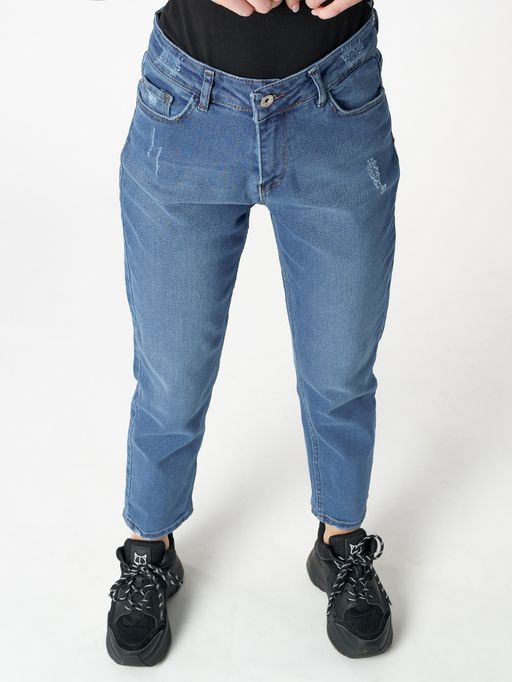 Джинсы женские прямые с высокой талией синего цвета 536_20S
