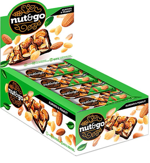 Nut&Go, батончик Almond & peanut, 36 г (упаковка 18 шт.)