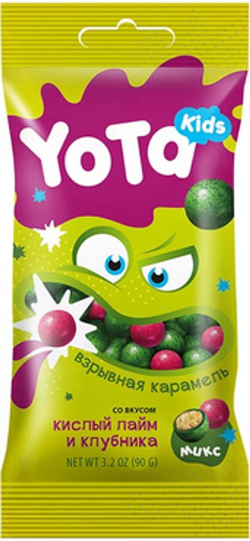 Yota, драже Хрустящий шарик со взрывной карамелью Кислый лайм/клубника, 50 г (упаковка 16 шт.)