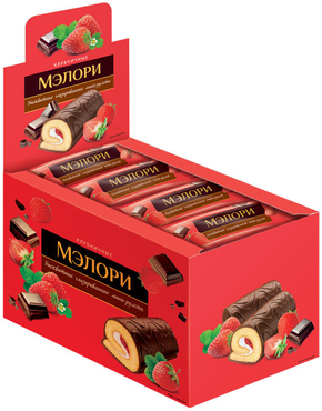 Мэлори, мини-рулет бисквитный с клубничной начинкой, 40 г (упаковка 12 шт.)
