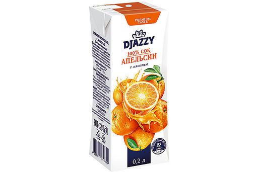 Цена за 5 шт.Djazzy, сок Апельсин с мякотью, 0.2л