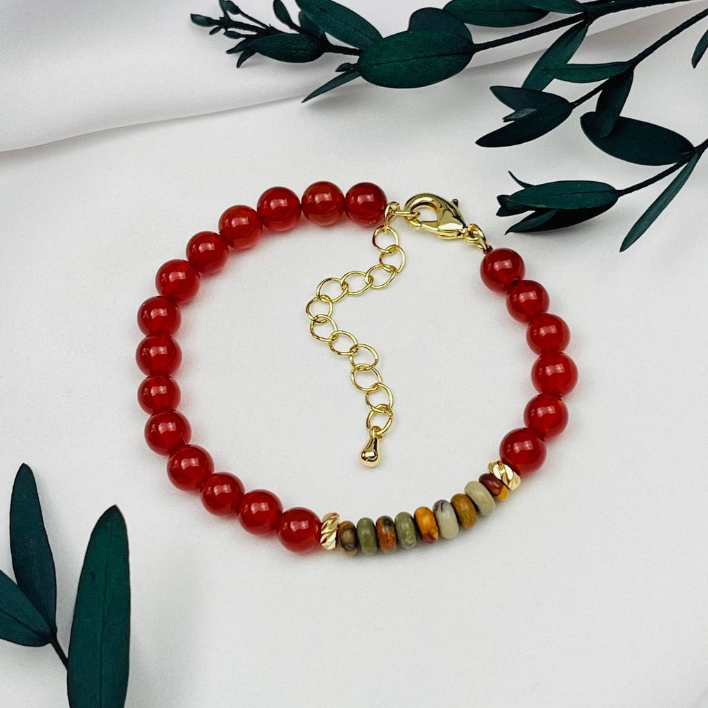 Браслет из Сердолика и Яшмы "Мукаит" 16 см +