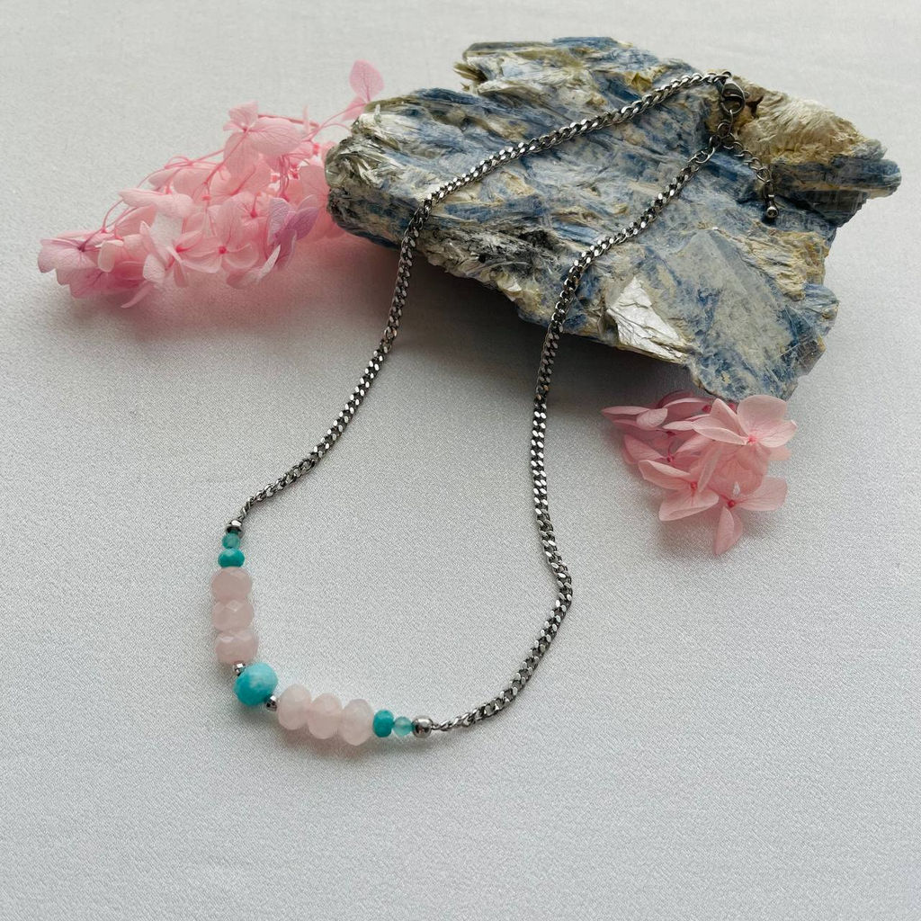 Колье на цепочке из Розового кварца и Амазонита