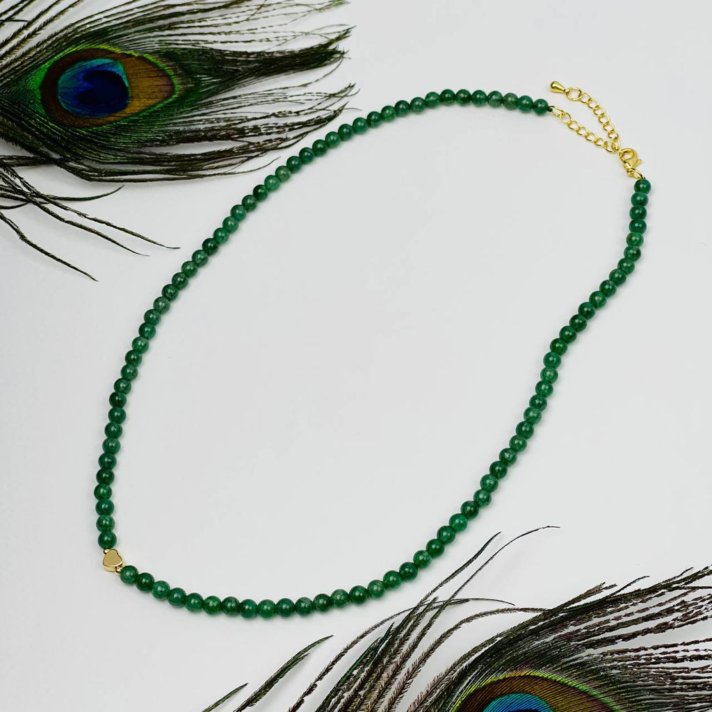 Бусы-Чокер из зеленого Авантюрина со вставкой "Сердце"